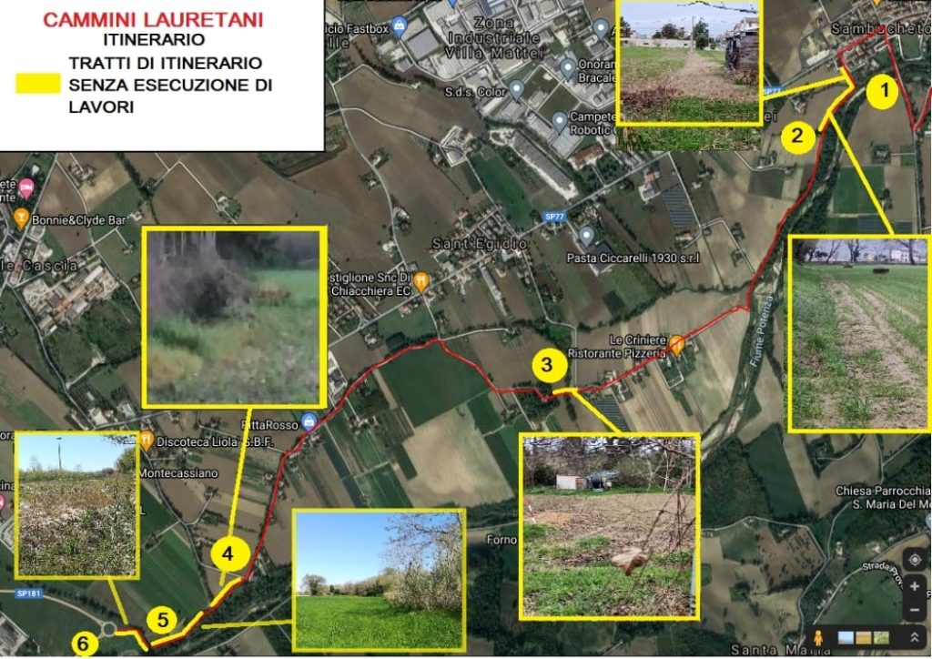 In seguito, la Giunta Regionale con Delibera n. 1633 del 28 dicembre 2021, ha approvato il tracciato definitivo della Via Lauretana Cinquecentesca – Strada Regia Postale, individuandolo formalmente come tracciato ufficiale del percorso, anche ai fini dell’aggiornamento della Rete Escursionistica della Regione Marche (RESM). Il 17.12.2024 risultano ultimati i lavori dell’intera opera come riportato nella Determinazione del Responsabile del Procedimento n.65 del 29.01.2025.