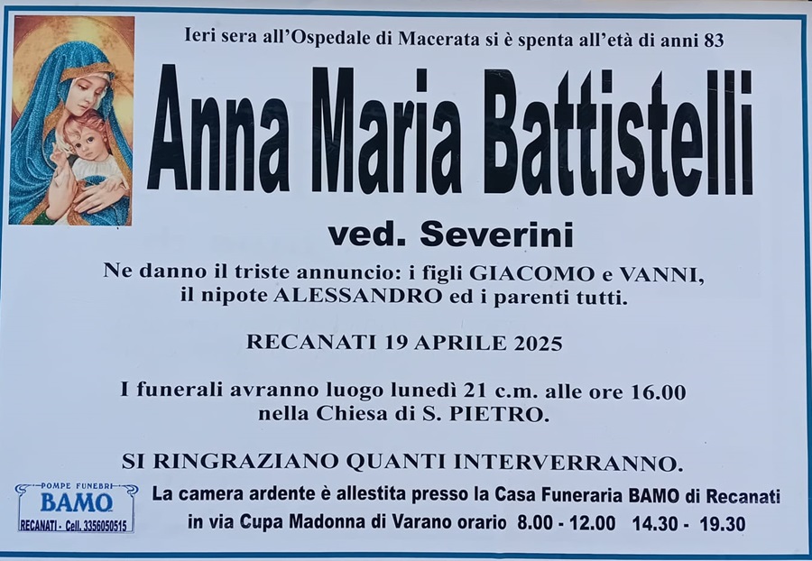 Home » Si è spenta Anna Maria Battistelli ved. Severini