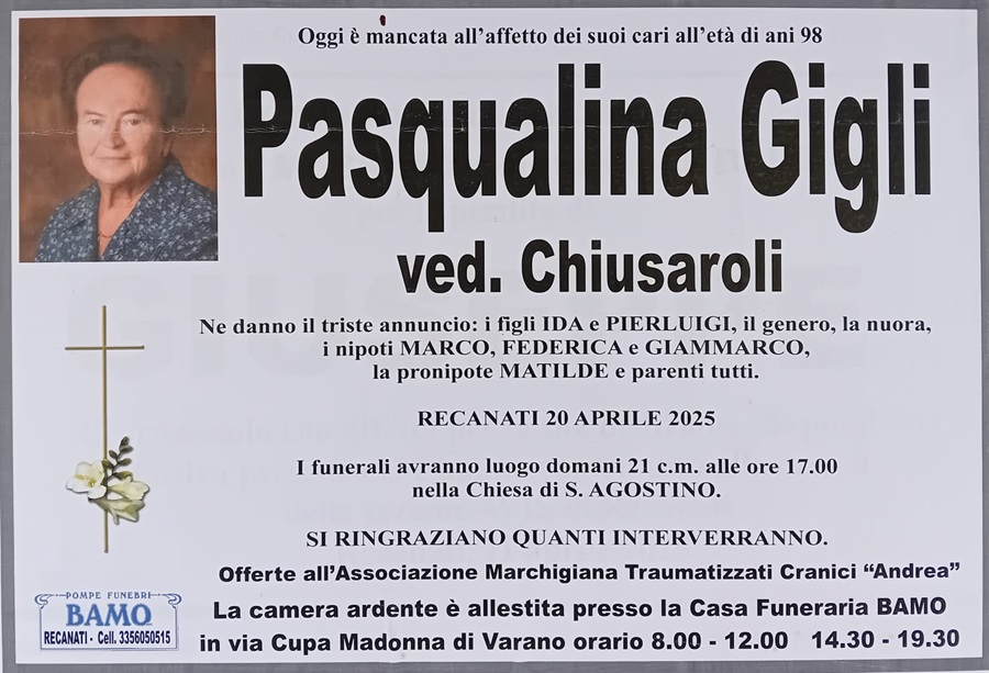 E’ deceduta Pasqualina Gigli ved. Chiusaroli