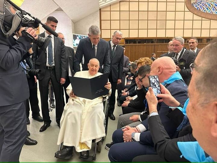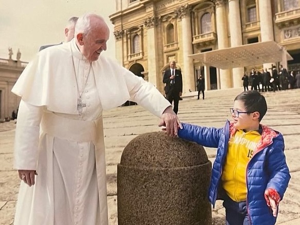 A consegnare il dono allora al Pontefice fu Elia Pepa, figlio di Emanuele, allora presidente della Confartigianato della Regione Marche (fu proclamato sindaco di Recanati nel luglio 2024). Per il ragazzo non era il primo contatto con Papa Francesco. Nel 2016, infatti, allora poco più che un bambinetto, era a Roma, in piazza San Pietro, con i suoi genitori ad ascoltare il Papa. Con grande spirito di autonomia e una simpatia invidiabile sfuggì al controllo della famiglia e della Guardia Svizzera e andò incontro al Papa che lo abbracciò scambiando con lui qualche parola: un incontro sancito anche da una foto che finì in copertina dell’Osservatore Romano.