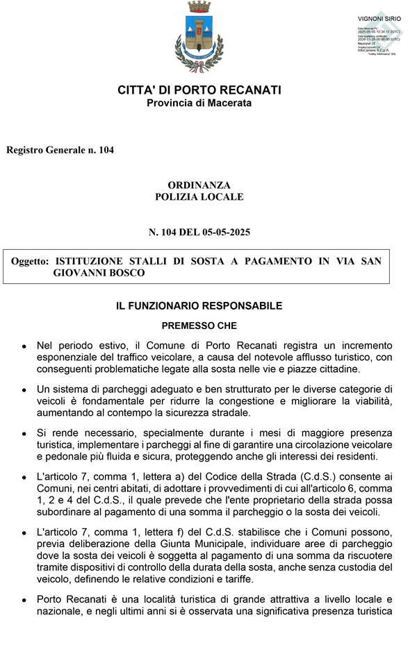 “Siamo letteralmente sconcertati dall’ ordinanza emessa dall’ amministrazione Michelini sull’ istituzione di ben 35 stalli a pagamento in via San Giovanni Bosco, zona centrale della città. Non riusciamo a comprendere di come l amministrazione comunale, composta nella quasi totalità da portorecantesi doc, non si renda conto che proprio quella via è abitata da cittadini residenti. Quei cittadini che tanto nello slogan elettorale delle scorse elezioni venivano messi al primo posto . Ricordiamo al sindaco e alla sua giunta che la nostra città già è carente di posti auto per residenti e che questo da sempre ha rappresentato un annoso problema. Ora addirittura vengono incrementati ulteriori stalli a pagamento. Non era l’amministrazione dei e per i cittadini? “