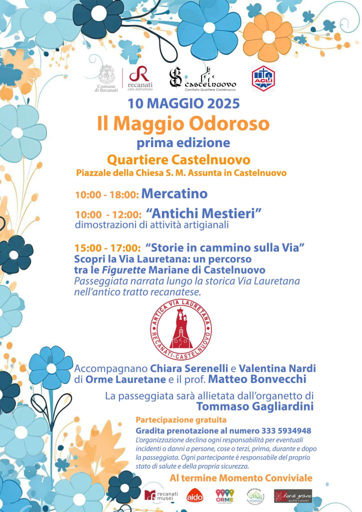 Sabato 10 maggio 2025, il Comitato Quartiere Castelnuovo di Recanati presenta la prima edizione de Il Maggio Odoroso, una festa ispirata alla celebre frase del canto “A Silvia”, la musa tessitrice del nostro illustre poeta Giacomo Leopardi.