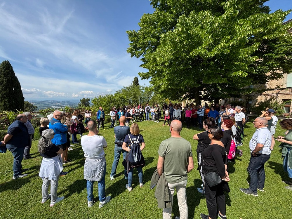 Il serpentone dei partecipanti si è dunque snodato su un percorso di 5 km che, da Piazza Leopardi, ha condotto i ‘passeggiatori’ attraverso i luoghi più suggestivi di Recanati, dal parco di Villa Colloredo alla piazzetta del Sabato del Villaggio e Casa Leopardi, passando attraverso il meraviglioso Orto del Colle dell’Infinito che, per l’occasione, è stato presentato dalle guide messe a disposizione dal FAI. Dopo un doveroso passaggio sotto la Torre del Passero solitario, la comitiva ha fatto ritorno in Piazza Leopardi, dove il viaggio alla scoperta di Recanati si è concluso.