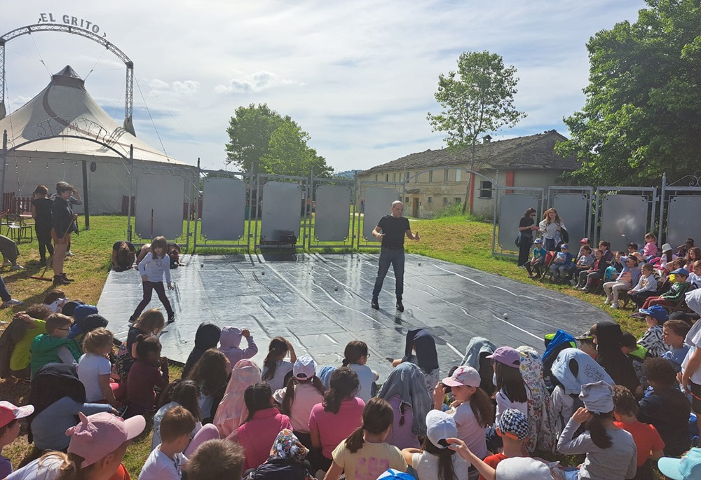 È stata davvero una giornata edificante, grazie alla quale i bambini hanno capito la differenza tra circo tradizionale e circo contemporaneo, quest’ultimo caratterizzato dall’assenza di animali e da un particolare uso del linguaggio corporeo che va compreso e goduto con attenzione e cura dei particolari. La magia di Circo El Grito sarà anche ospite dell’edizione 2025 di Art Festival, il 12 e il 13 luglio a Recanati, con uno spettacolo al Cortile di Palazzo Venieri.