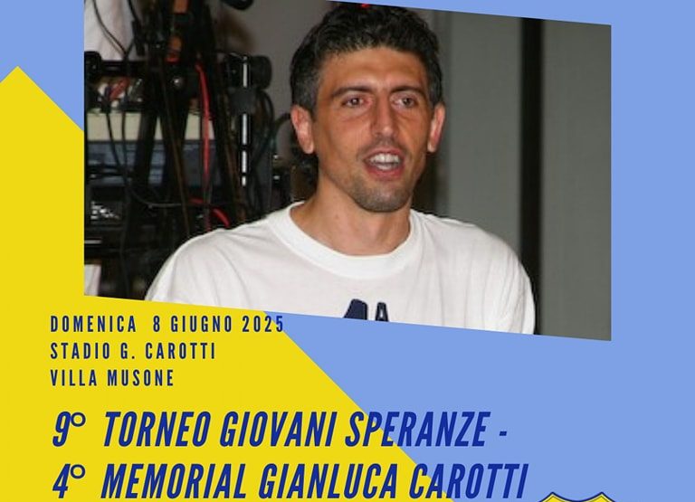 Ritorna il Torneo Giovani Speranze. La kermesse sportiva riparte con la sua 9° edizione, il “Memorial Gianluca Carotti” in ricordo del nostro indimenticato Gianluca tragicamente scomparso insieme alla compagna Elisa Del Vicario il 3 marzo 2019. Una formula che vedrà, nella giornata di domenica 8 giugno, incrociare il proprio destino le squadre della Categoria Pulcini 1° anno e Under 12 e 10 femminile: le squadre partecipanti sono il Villa Musone, Nuova Sirolese, Vigor Castelfidardo nei Pulcini mentre nel femminile le ladies gialloblu, Polisportiva BOCA SEM e Ancona Woman Respect. Una sana giornata di sport che sarebbe piaciuta al caro Gianluca, vissuta all’insegnamento del divertimento e della condivisione. Il terreno di gioco sarà quello di Villa Musone, che la società ha voluto intitolare proprio in ricordo di Gianluca in accordo con l’amministrazione Comunale di Recanati, che patrocinerà questo evento.