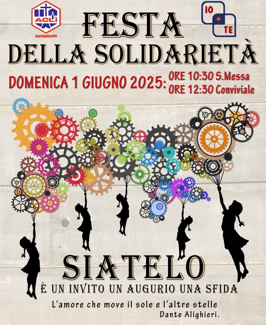 Domenica 1° giugno, il Circolo Acli di Sant’Egidio ospiterà la XXIII edizione della Festa della Solidarietà, una giornata che ogni anno unisce associazioni, volontari e amici in un grande momento di comunità, condivisione e accoglienza.