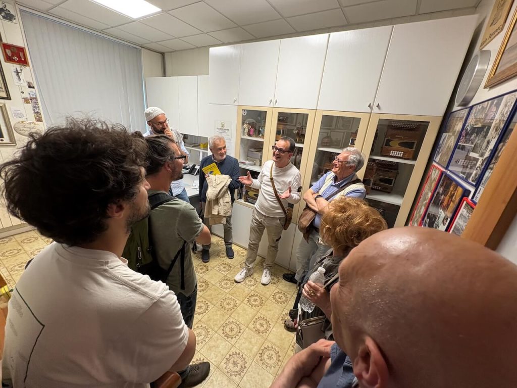 Infine, la visita al laboratorio della famiglia Castagnari, la Bottega de Ja, orgoglio di Castelnuovo, dove da più di 100 anni si producono organetti. Massimo Castagnari, che ha raccontato con passione come nasce lo strumento, ha anche condiviso alcune storie della sua famiglia attraverso aneddoti e ricordi, rendendo ancora più speciale questa tradizione secolare e trasmettendo ai visitatori il calore e l’autenticità di un’arte tramandata di generazione in generazione.