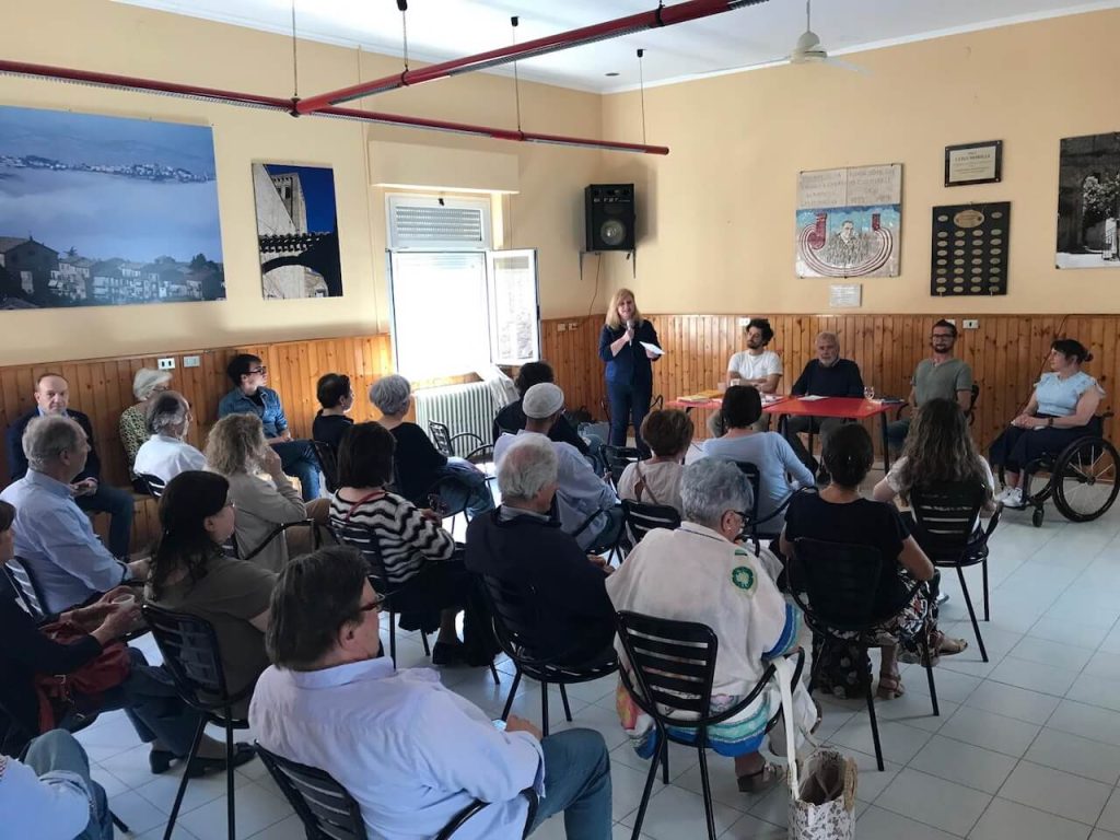 L’incontro si è concluso con il commovente contributo di Agata Turchetti, autrice del libro “Le faglie della memoria”, che nel narrare la storia di sua madre Peppina, diventata famosa per non aver voluto abbandonare il proprio paese, San Martino di Fiastra, dopo il terremoto del 2016, annota la desolazione dei luoghi abbandonati da chi vi abitava.