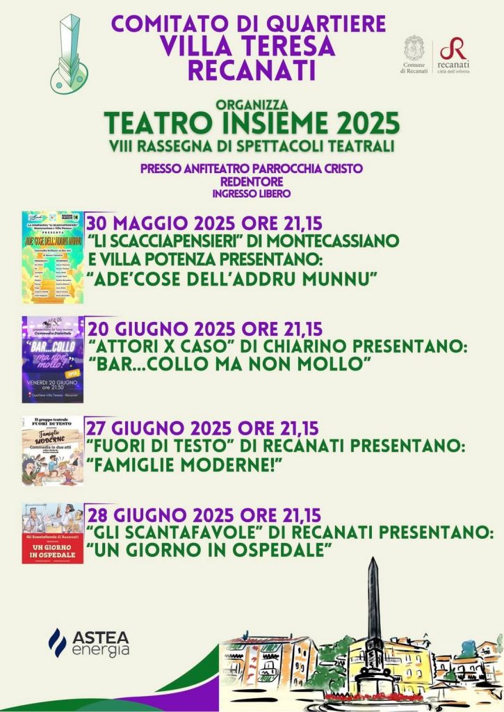 Sabato 7 giugno sarà una giornata dedicata soprattutto a famiglie, bambini e giovani. A partire dalle 15:30, sempre in Piazza Leopardi, prenderanno vita giochi tematici curati da Clementoni, uno spettacolo scientifico dell’associazione Leo Scienza, animazione e spazi interattivi dedicati alla scoperta e alla condivisione.