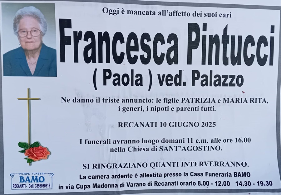 E’ morta Francesca (Paola) Pintucci ved. Palazzo