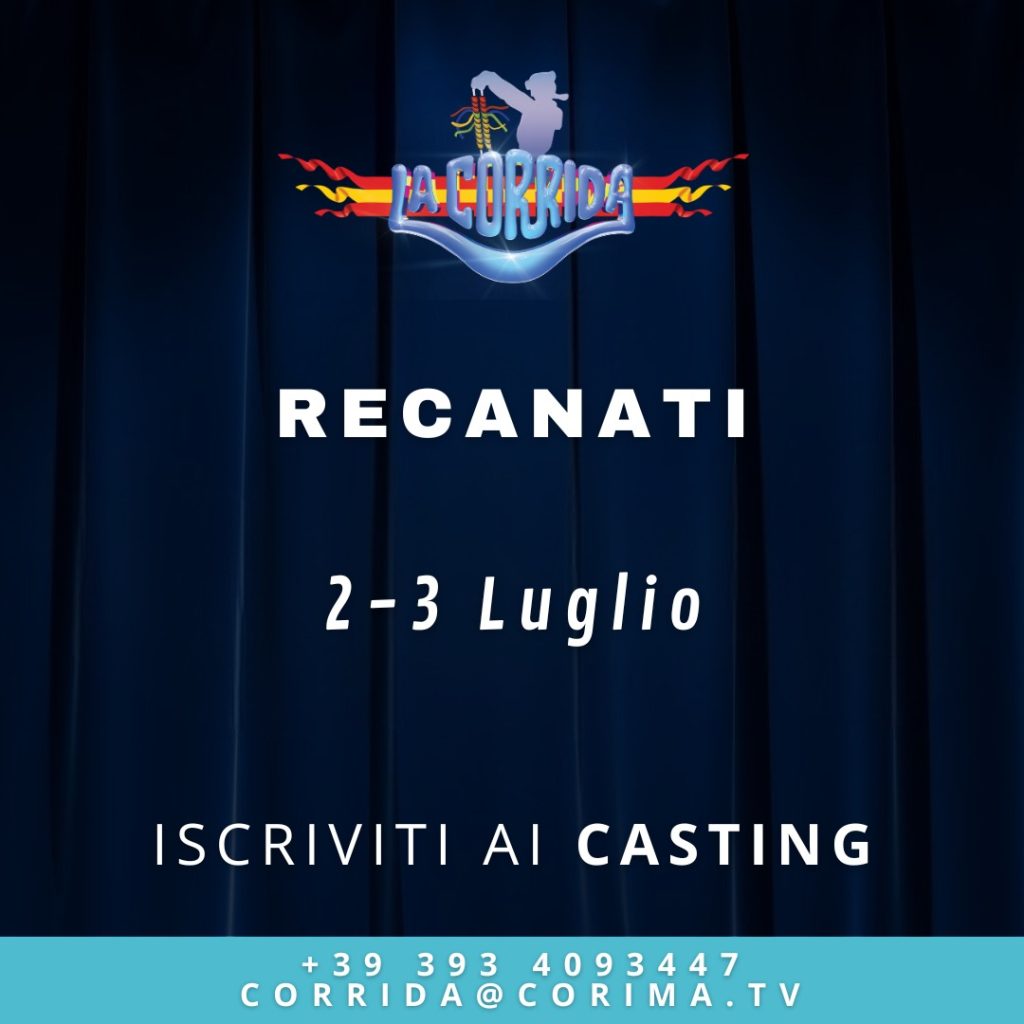 La Pro Loco Recanati è lieta di annunciare che il casting del programma televisivo “La Corrida” arriverà in città per le selezioni ufficiali nei giorni 2 e 3 Luglio.