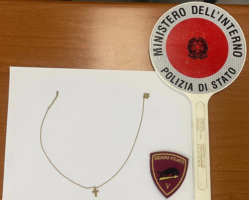 Gli autori del furto venivano quindi rintracciati pochi ore più tardi proprio nei pressi dell’albergo dove, sottoposti a perquisizione personale, i poliziotti rinvenivano la catenina sottratta al denunciante.