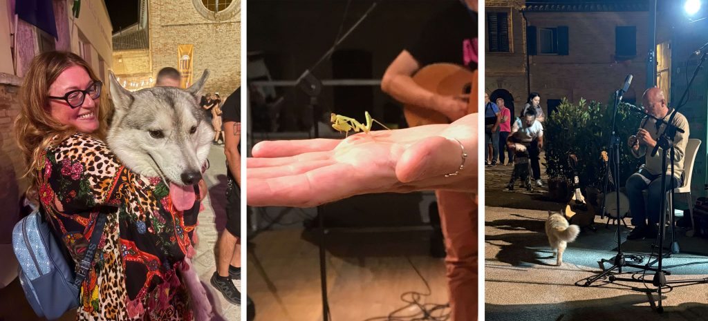 Tra gli ospiti, non potevano mancare i ballerini più stravaganti: un cane in coppia con la sua padrona, una mantide religiosa che si è lanciata sul palco in mano a un musicista, e il gatto rosso, ormai diventato la mascotte del quartiere, che si aggira tra i musicisti come una vera star!