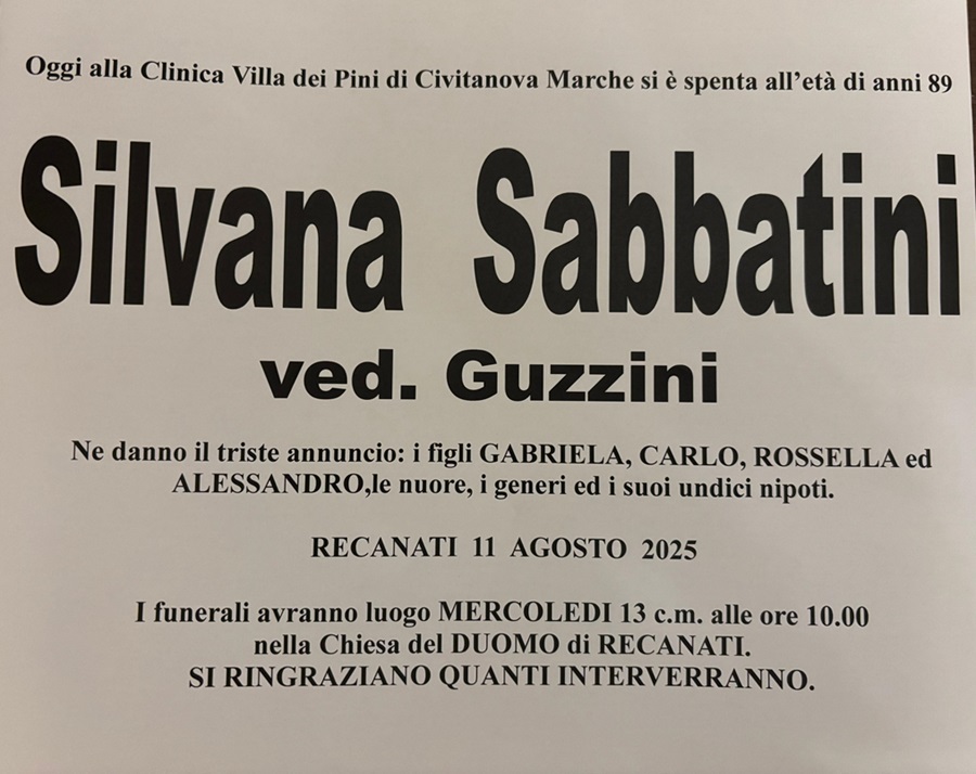 Home » E’ morta Silvana Sabbatini ved. Guzzini