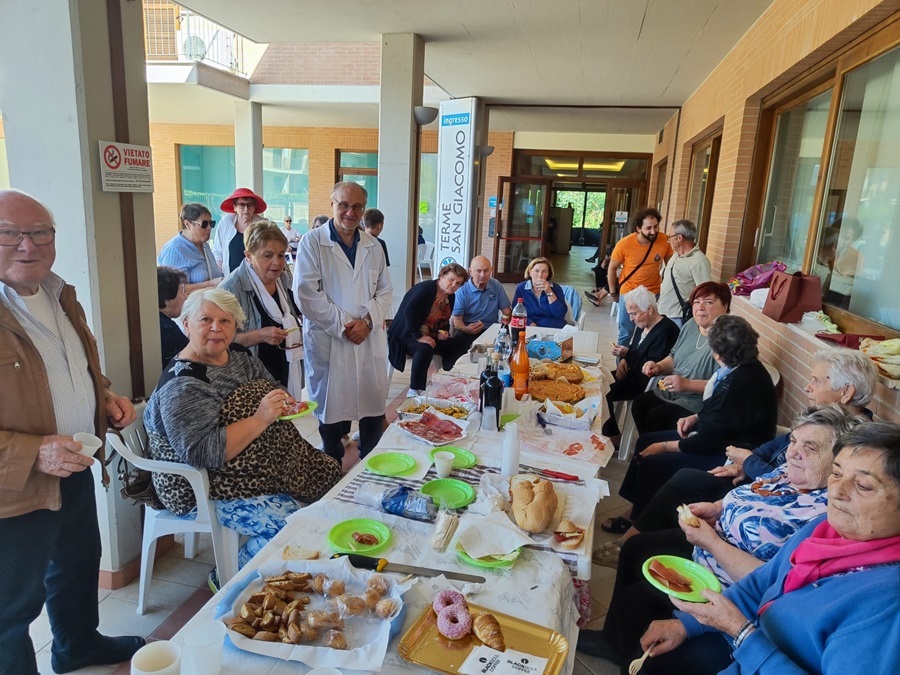 Con lo storico gemellaggio di prodotti tipici instaurato nel pre-covid tra gli anziani di Loro Piceno (vino cotto) e Recanati (dolcetti e cantuccini leopardiani) e ad altre specialità,si è concluso il ciclo termale alle Terme San Giacomo @ Sarnano degli anziani di Recanati.