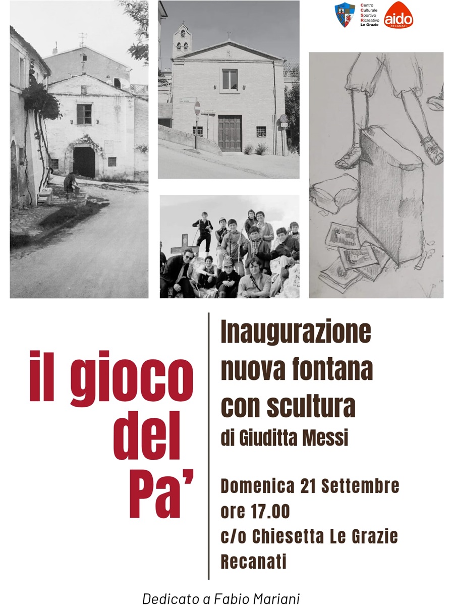Domenica 21 settembre 2025, alle ore 17.00, nel piazzale della Chiesetta della Madonna delle Grazie, si terrà l’inaugurazione della nuova fontana con scultura in ricordo di Fabio Mariani. L’iniziativa è organizzata dal C.C.S.R. Le Grazie.
