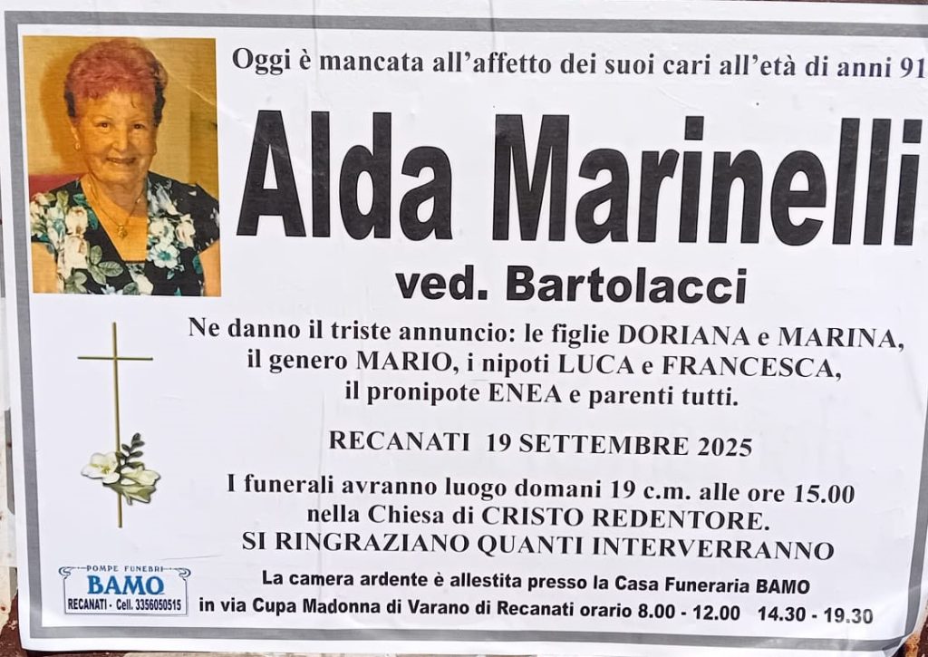 Home » E’ morta Alda Marinelli ved. Bartolacci