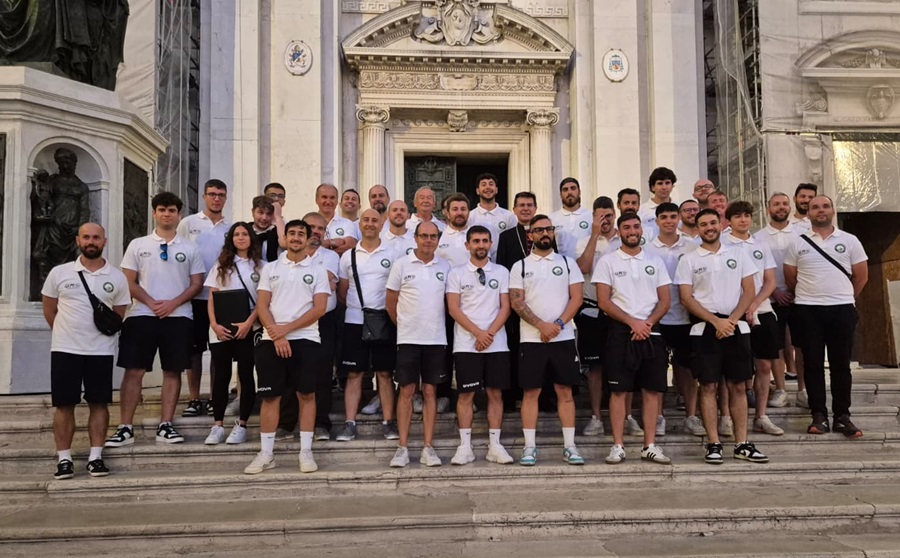 A seguire, la foto sul sagrato ha visto la partecipazione di alcune autorità cittadine: il Sindaco Moreno Pieroni, il consigliere cin delega allo Sport Christian Anticaglia e il Consigliere Paolo Albanesi. Il Sindaco ha espresso parole di incoraggiamento, ribadendo il valore educativo dello sport e l’orgoglio di portare alto il nome di Loreto attraverso l’impegno e i valori sportivi.