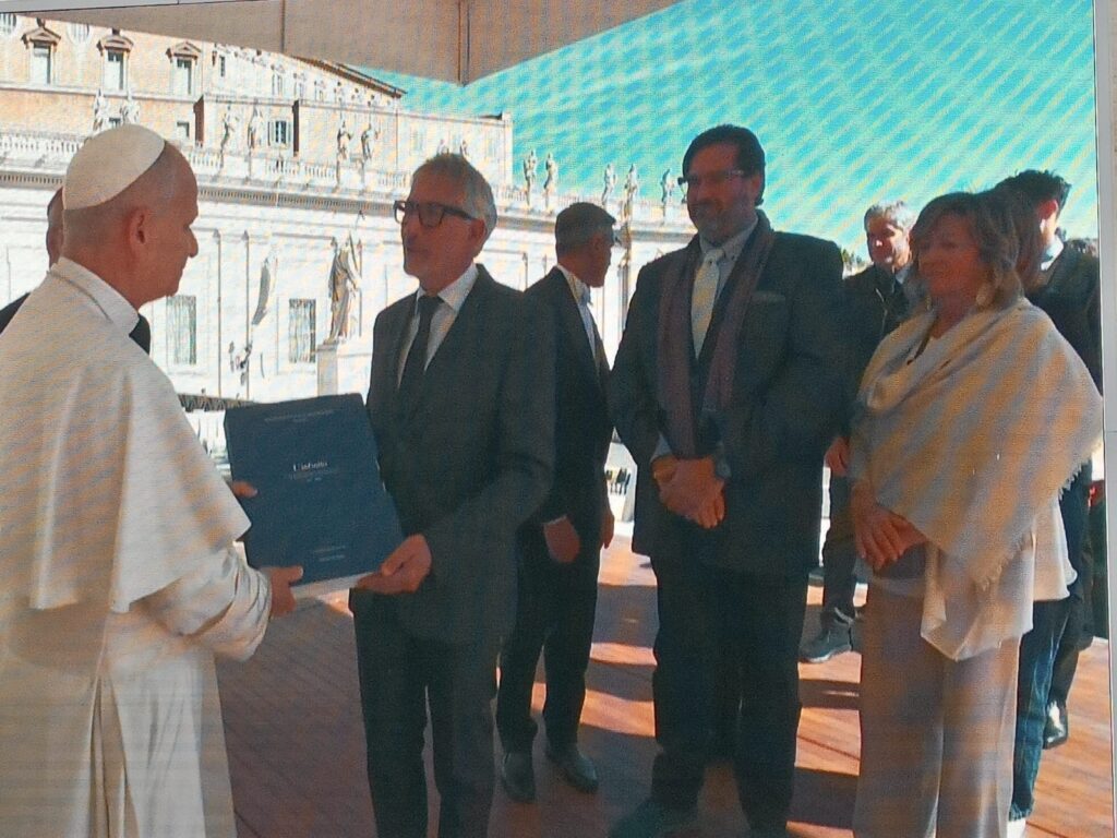 Gerardo Pizzirusso e alcuni componenti del cda della BCC di Recanati-Colmurano davanti a Papa Leone XIV
