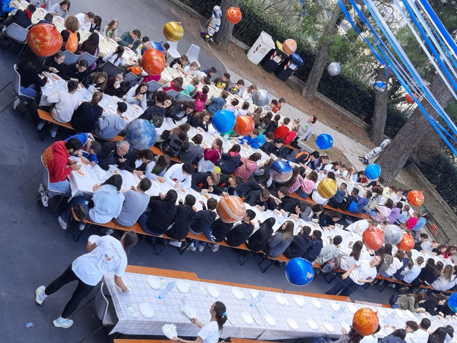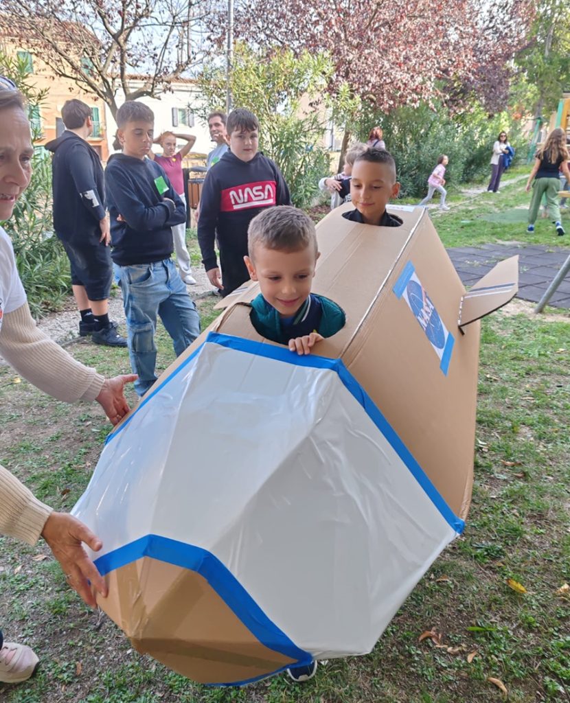 Dopo pranzo ci si divide in vari megagruppi e si fanno esperienze, in quattro aree gioco, diffuse nel quartiere. Il percorso dentro le astronavi, al parco dei Torrioni, incuriosisce e diverte; il pianeta avvelenato e le comete fanno correre e sudare un bel po’ i partecipanti nel piazzale della Coal; il gioco dell’autocontrollo e della memoria, al Club Aquila, valorizza i più riflessivi e concentrati; l’immersione nella Stazione Spaziale Internazionale, dopo un percorso al buio nei locali parrocchiali, fa vivere l’esperienza del volo sulla navicella, fa vedere le immagini della NASA del cielo e della terra da centinaia di chilometri dal nostro pianeta e fa lodare Dio per il creato.