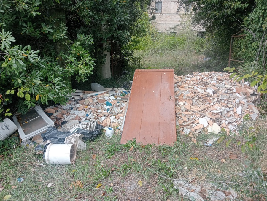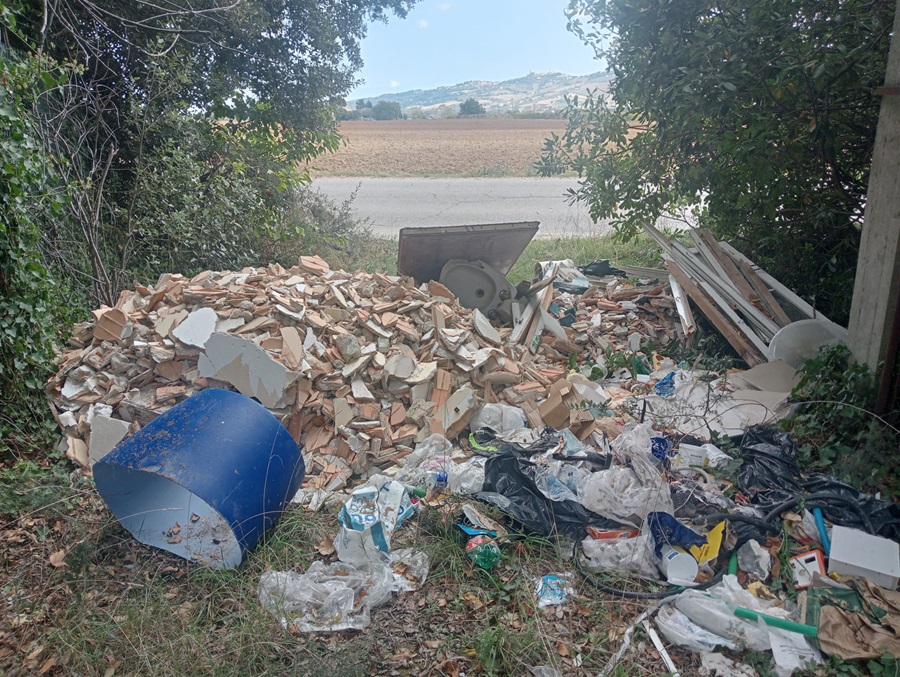 Nei pressi di una casa colonica in località San Pietro, subito dopo la chiesa, scendendo all’inizio del tratto rettilineo sulla destra, è stato segnalato un cumulo di rifiuti abbandonati. Si tratta di materiale di risulta proveniente da lavori in corso in una abitazione della zona: pezzi di muratura, vecchie porte, sanitari e altri scarti edili accatastati lungo il margine della strada.