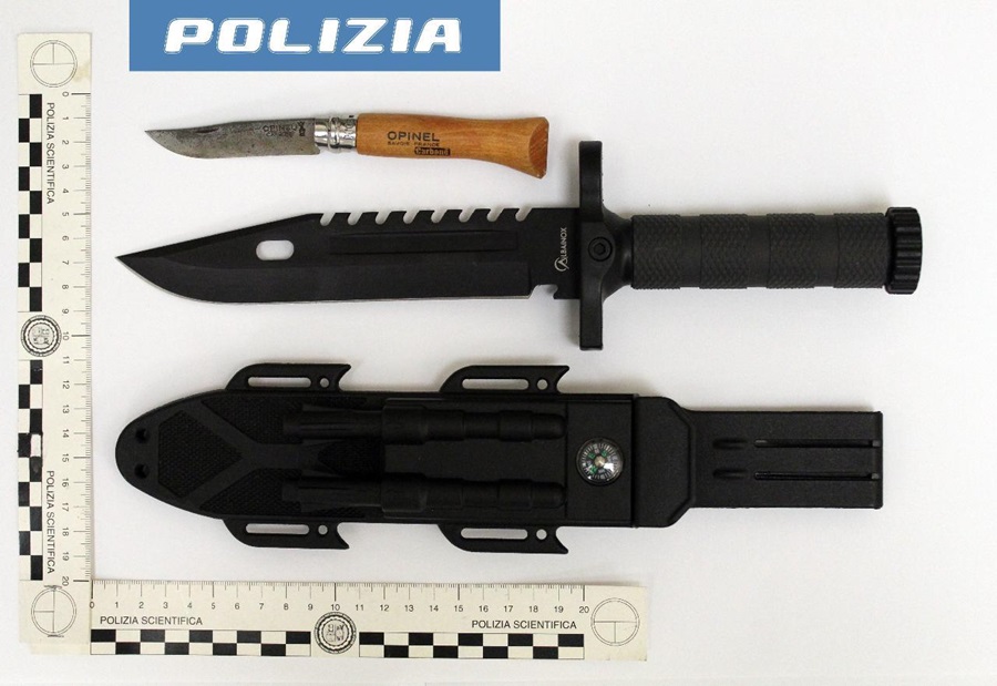 Nel corso del pomeriggio di ieri una pattuglia della Polizia di Stato impegnata nelle attività di controllo del territorio a Civitanova Marche, transitando nelle zone vicine allo stadio, notava un’autovettura in sosta nel parcheggio antistante la struttura sportiva con due persone a bordo. Gli agenti del Commissariato di P.S. di Civitanova Marche procedevano al controllo dei due soggetti, ventenni, italiani e residenti in provincia di Fermo. Il controllo veniva approfondito anche al veicolo, venivano rinvenuti due coltelli: uno dotato di blocco lama e un altro di tipo militare.
