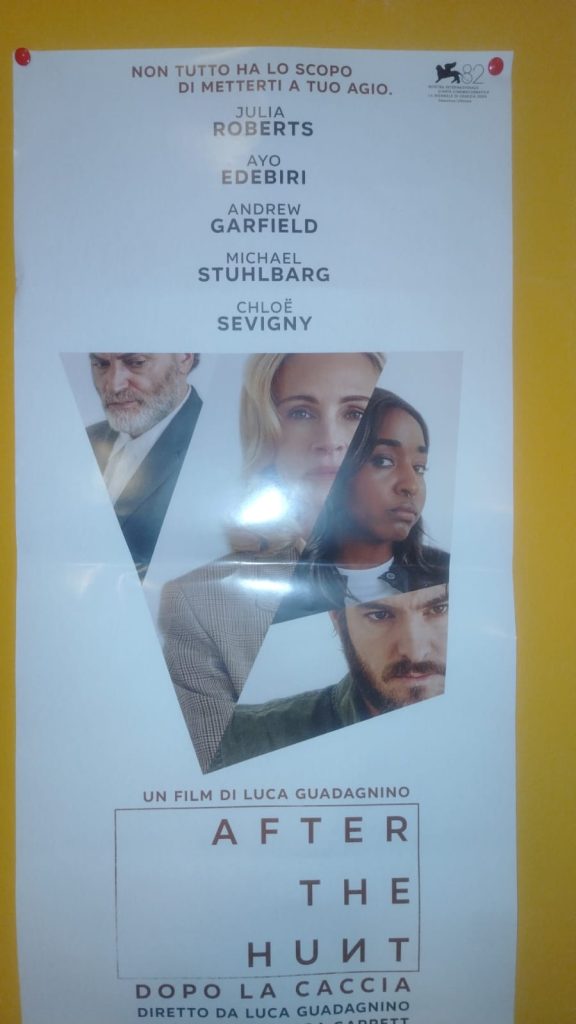 Da venerdì 24 a mercoledì 29 After the Hunt- dopo la caccia orario spettacoli 18.30- 21.00 di Luca Guadagnino con Julia Roberts Prezzi biglietti 7.00 – 5.00(ridotto) mercoledì 5.00