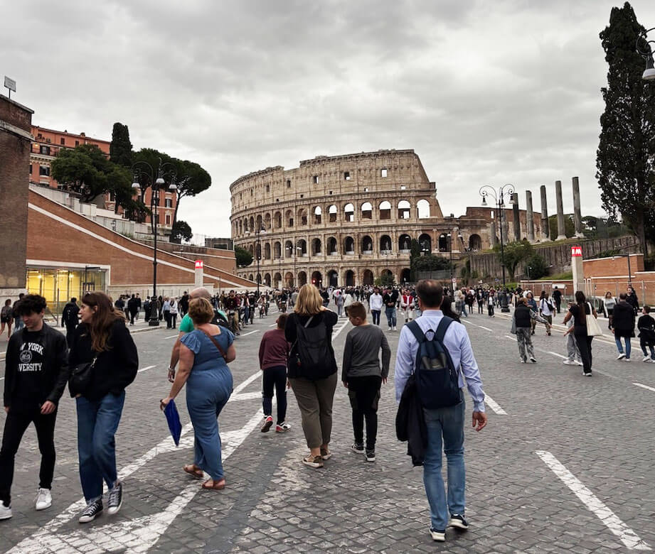 La giornata si conclude al calare della sera, raggiungendo la Metro al Colosseo. Osservando le rovine del Foro Romano, si percepisce un gigantesco buco nel tempo. Ogni colonna spezzata, ogni fondazione interrata, ogni rovina rappresenta un vuoto di presenza, un’assenza che ci costringe a guardare indietro, a colmare mentalmente il vuoto lasciato dal passato. È come se il silenzio di queste pietre ci invitasse a riflettere sulle infinite storie che un tempo animavano questi spazi, ricordandoci che anche ciò che sembra perduto può vivere ancora nelle nostre memorie e nel nostro immaginario.