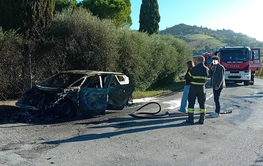 L’auto, una Renault di modello non più riconoscibile a causa dei gravi danni, è rimasta carbonizzata sul posto.