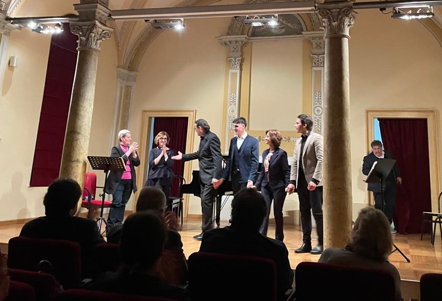Non sono mancate le sorprese e i coupe de theatre ieri pomeriggio all’Auditorium del Centro Mondiale della Poesia in occasione del secondo appuntamento della rassegna La Brevità, gran pregio! Selezioni ragionate d’opera per la preparazione all’ascolto delle stagioni liriche marchigiane autunnali e invernali, organizzata dall’Associazione Beniamino Gigli con il patrocinio del Comune di Recanati, in collaborazione con la Fondazione Rete Lirica Marche e con la Civica Scuola di Musica Beniamino Gigli di Recanati. In sala erano presenti il parlamentare europeo Carlo Ciccioli, l’Assessore alla Cultura del Comune di Recanati Ettore Pelati e il Direttore della Scuola Civica Gigli M. Ermanno Beccacece.