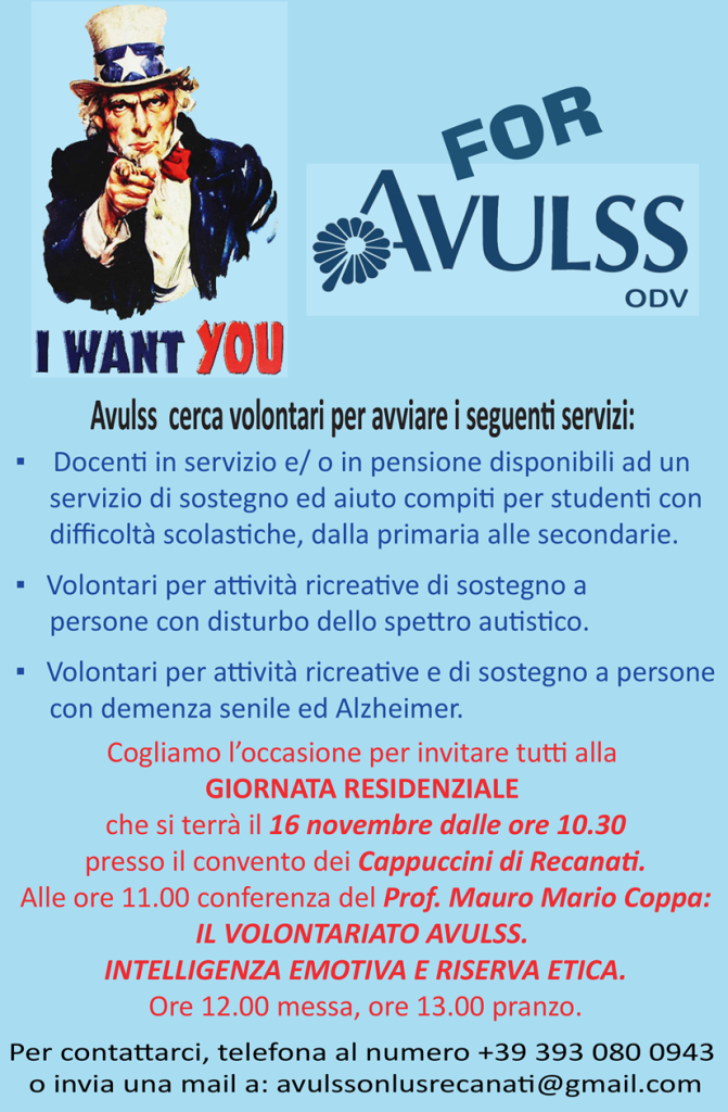 Chi desidera avvicinarsi al mondo del volontariato o ricevere ulteriori informazioni può contattare l’associazione telefonando al 393 0800943 o scrivendo una mail all’indirizzo avulssonlusrecanati@gmail.com