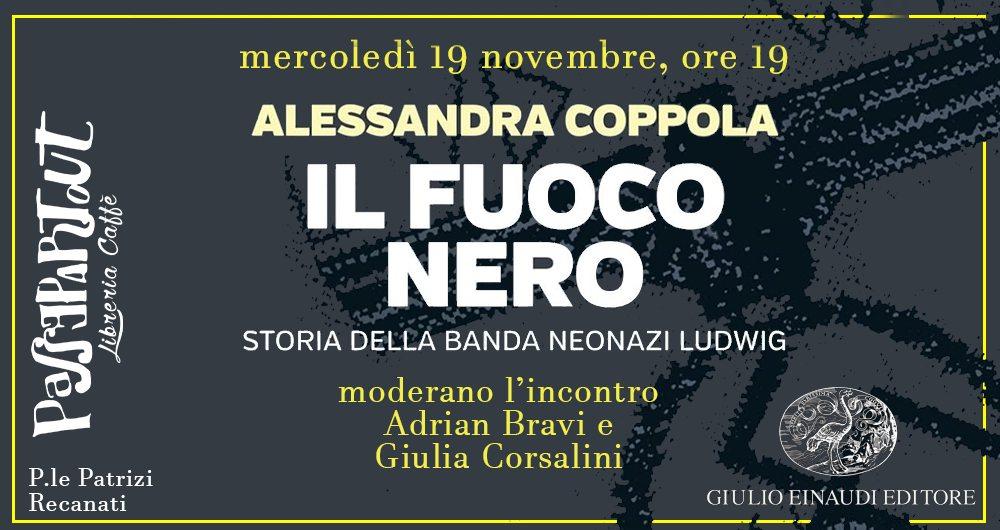 La giornalista del Corriere della Sera Alessandra Coppola sarà ospite della libreria Passepartout di Recanati per presentare il suo libro Il fuoco nero – Storia della banda neonazi Ludwig. Un volume che riporta alla luce una pagina quasi rimossa della storia nera italiana: la serie di attentati compiuti dal gruppo neonazista Ludwig negli anni Ottanta.