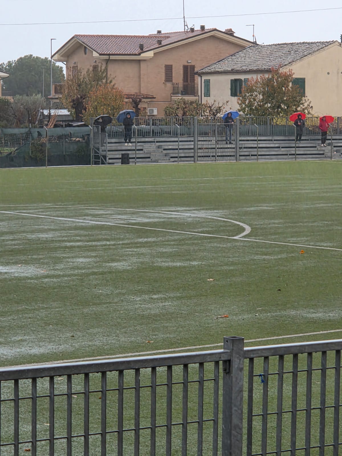 Niente da fare ieri al campo sportivo Martinelli di Porto Sant’Elpidio. Il maltempo e le forti pioggie iniziate nella nottata di venerdi sera hanno allagato il campo, e nonostante i tentativi degli addetti di far defluire l’acqua piovana, l’arbitro, dopo aver verificato le condizioni di impraticabilità del campo, a norma di regolamento, ha dichiarato il rinvio della partita che sarà recuperata a data da destinarsi. Nonostante lo stop forzato, il CSI, reduce da sei vittorie ed un pareggio, mantiene il secondo posto in classifica anche se vede allontanarsi momentaneamente il Casette D’Ete che è volato a + 4. Prossimo impegno per il CSI Recanati venerdi 28 Novembre al Tubaldi , ospite di turno il Real Telusiano.