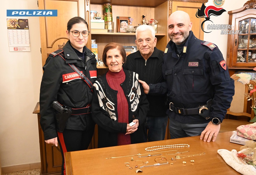 Poco dopo, una delle due indagate si è presentata all’abitazione dell’anziana, che – spaventata – le ha consegnato oro e gioielli, compresa la fede nuziale, riposti in un sacchetto da freezer. Solo in seguito, informato il coniuge e compreso l’inganno, la 79enne ha allertato i Carabinieri della Sezione Radiomobile di Macerata.