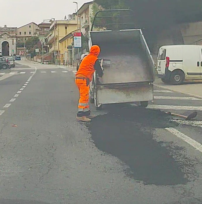 Recanati – Dopo le piogge ripartono i rattoppi sulle strade. A Bellaluce, giorni fa, una voragine ha danneggiato 15 auto