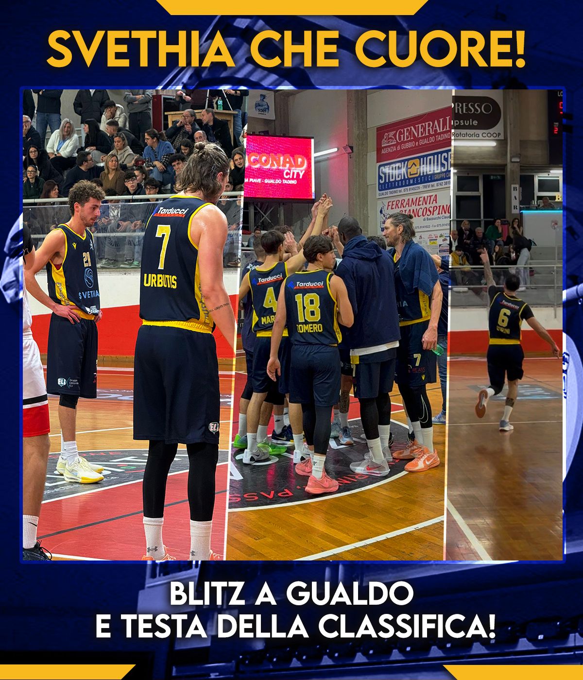 GUALDO TADINO – Una Svethia Recanati dai due volti torna a casa da Gualdo con una vittoria che la proietta in testa alla classifica del Girone D seppur in coabitazione della Vigor Matelica ed in attesa del posticipo tra Jesi e Civitanova. Avvio di gara a fari spenti per i ragazzi di coach Schiavi che subiscono l’entusiasmo di una Gualdo ringalluzzita dal successo di Termoli e desiderosa di far bene davanti al proprio pubblico. Gira a mille la coppia Vukobrat-Filahi e umbri subito sul 16-7 che costringe coach Schiavi al primo time-out della serata. Si accende Magrini ma è solo un fuoco di paglia perchè Gualdo buca la retina ospite con regolarità ed ancora lo scatenato Vukobrat regala ai suoi il primo vantaggio in doppia cifra (21-10). Recanati non trova le contromisure giuste e la tripla di Monacelli fa esplodere il PalaLuzi (34-16). Andreani e Pozzetti con due conclusioni dall’arco dei 6.75 riportano in linea di galleggiamento una Svethia che al 10′ chiude 35-22. Ci si aspetta la reazione gialloblu che però tarda ad arrivare: Cola-Vukobrat e Marini mettono a ferro e fuoco la retina ospite ed è nuovo massimo vantaggio Gualdo (41-22), la Reca riemerge lentamente coi canestri di Andreani, Sabbatini ed Urbutis fino a tornare a -10 (43-33). All’intervallo si respira già un aria diversa nonostante il tabellone dica 48-37 Gualdo. Passata la tempesta la Svethia torna a far capire perchè è nei quartieri nobili della classifica: si scatena Pozzetti, il numero 55 gialloblu infila cinque triple di fila ed il vento cambia radicalmente. A metà quarto arriva il vantaggio Reca (53-55), le certezze dei padroni di casa si sgretolano possesso dopo possesso mentre Urbutis e Magrini fanno volare i gialloblu fino al +9 (53-62). Il parziale si archivia sul +9 (57-66) certificando il dominio totale di una Svethia che continua a punire ripetutamente la difesa umbra: Buzzone all’alba degli ultimi dieci minuti sigla il +11 (57-68), Gualdo non ne ha più, Andreani più Urbutis con tripla di Gurini ed è sipario (59-75). Ultimi minuti utili solo alle statistiche, finisce 65-80 ed è festa grande per i tanti tifosi leopardiani al seguito.