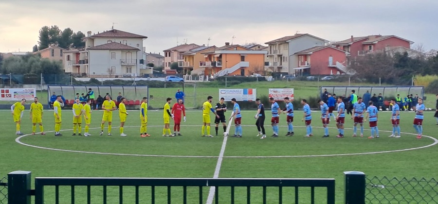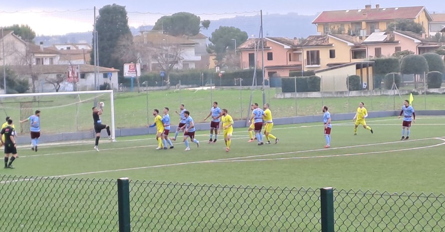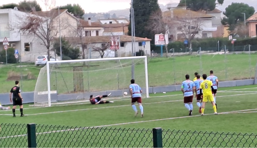 Il Loreto viene raggiunto nei minuti di recupero dal Pollenza, dopo una gara più agonistica che tecnica, con le due squadre che si sono affrontate a viso aperto senza particolari tatticismi. Nella prima frazione il Loreto spinge di più ma la prima occasione è per gli ospiti al 17’ Andreucci impegna Ottaviani che respinge, al 24’ Loreto in vantaggio su rigore, concesso per atterramento in area di Santoro, capitan Pigliacampo trasforma, il Pollenza prova a reagire con il Loreto che agisce in contropiede, al 41’ Santarelli, sugli sviluppi di un angolo, di testa mette alto da buona posizione.