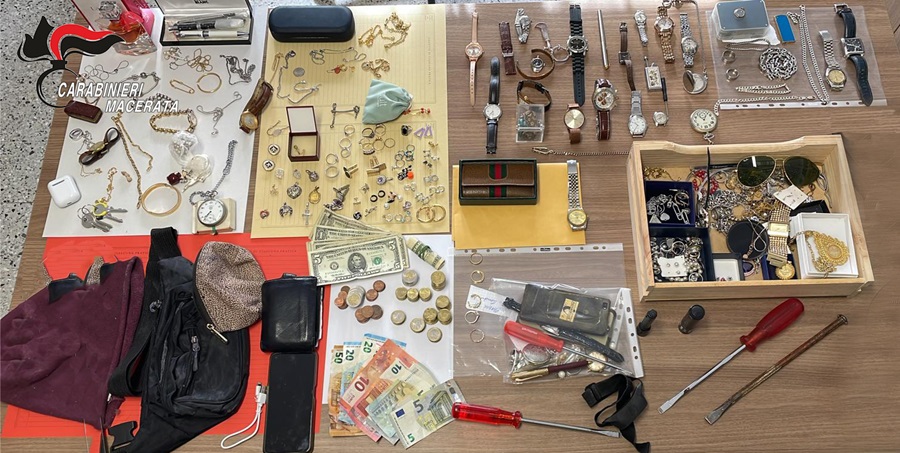 Nel corso dell’operazione, l’arrestato venne trovato in possesso di numerosi oggetti in oro, oltre a denaro contante per circa 300 euro e 150 dollari statunitensi. Successivi accertamenti e una perquisizione domiciliare consentirono inoltre di rinvenire diversi arnesi da scasso, confermando la natura predatoria dell’azione criminosa.