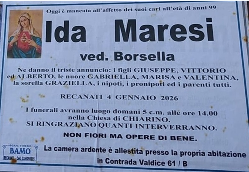 E’ morta Ida Maresi ved. Borsella