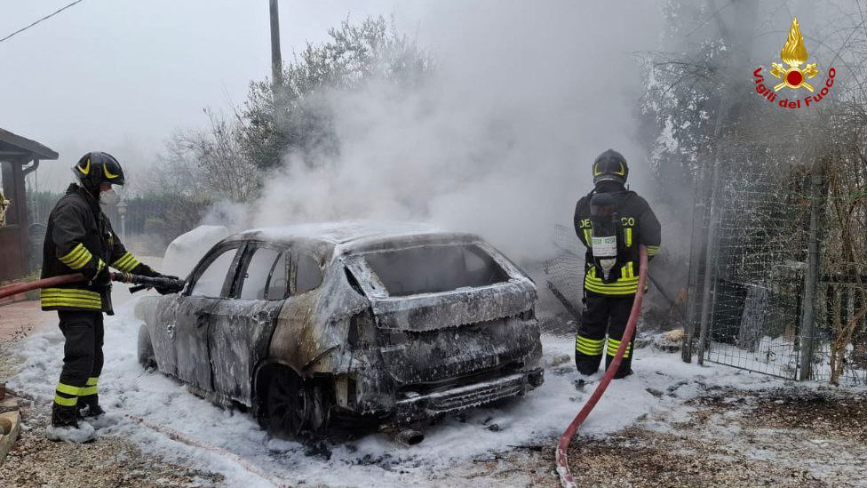 Coinvolta anche un’autovettura parcheggiata nelle immediate vicinanze.