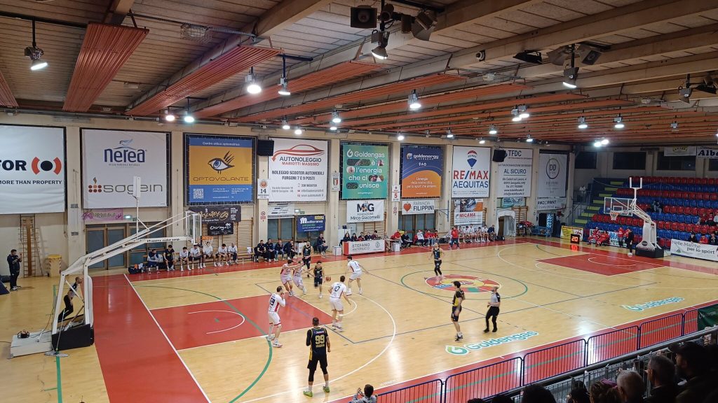 SENIGALLIA – Comincia nel migliore dei modi il girone di ritorno della Svethia Recanati che sbanca il parquet di Senigallia col punteggio di 77-65 ed aggancia la vetta della classifica in coabitazione con Matelica, Civitanova e Porto Recanati. Avvio di match equilibrato con la Reca che vuole sfruttare il maggiore tonnellaggio sotto le plance affidandosi spesso ai movimenti spalle a canestro di Urbutis e Pozzetti, Senigallia trova qualità e quantità dalla coppia Cicconi Massi-Foglietti ed alla prima sirena è +2 Goldengas (23-21). Tanto equilibrio anche nella prima parte del secondo periodo, Recanati pesca dalla panchina un ottimo Semprini con il sempre prezioso Sabbatini a portare energia difensive. Il contropiede di Buzzone vale il +6 (34-40) poi è Semprini a firmare il massimo vantaggio leopardiano (34-42). All’intervallo una tonica Recanati è a +7 (37-44). Al ritorno dagli spogliatoi parte meglio Senigallia: parziale di 11-2 con la Reca che trova nei primi 5 minuti soltanto due punti di Urbutis a cronometro fermo. Il vantaggio Goldengas (48-46) scuote Andreani e compagni: si accende Urbutis che colpisce sia dall’arco che nel pitturato e leopardiani che scappano sul +9 (50-59). Il quarto si archivia con la Svethia avanti di 11 (51-62)  trascinata dai suoi tantissimi tifosi. Ultimi dieci minuti con i padroni di casa che tentano di ricucire il gap ma la Svethia sfoggia la difesa delle giornate migliori. Semprini giganteggia sotto le plance (55-68 al 7′), parziale di 6-0 Senigallia che accende il pubblico biancorosso e di nuovo Goldengas a -7 (61-68). Recanati non si scompone, l’asse Andreani-Urbutis funziona alle perfezione e gialloblu che chiudono senza patemi 65-77.