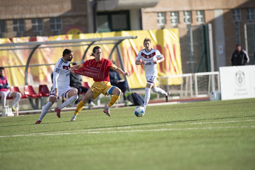 La Recanatese esce indenne dallo scontro diretto in chiave salvezza disputato a Cattolica contro il San Marino. 1 a 1 il risultato finale con i leopardiani che tornano a muovere la classifica dopo la sconfitta interna contro l’Aquila. Un punto che fa morale, ma non risolve più di tanto la situazione con i giallo rossi che restano impantanati in zona play out e a meno tre dalla salvezza diretta. Condizione non certo drammatica, ma che desta una più che giustificata preoccupazione anche alla luce del calendario che vedrà D’Angelo e compagni affrontare nelle prossime settimane prima l’Ancona neo capolista e successivamente l’Ostia Mare, in pratica due delle tre contendenti al salto di categoria in serie C. Per il delicato scontro di bassa classifica mister Pagliari getta subito nella mischia l’ultimo arrivato Eleuteri mentre deve fare a meno dello squalificato Vecchio. In porta è recuperato Zagaglia. L’inizio è promettente con la Recanatese che sblocca dopo appena cinque minuti grazie a Pesaresi, abile a ribadire in rete una respinta del portiere dopo un tentativo di Nanapere. Per il figlio d’arte è il terzo centro in campionato. Il San Marino reagisce e perviene anche al pareggio che l’arbitro annulla per fuorigioco, ma i leopardiani rispondono colpo su colpo con D’Angelo che crea qualche preoccupazione alla retroguardia dei titani. Allo scadere della prima frazione di gioco il pareggio di Della Salandra che si presenta a tu per tu con Zagaglia e non sbaglia. Prima dell’intervallo occasione per Chiarella ma la conclusione è alta. Meno vibrante la ripresa con le due squadre che sembrano volersi tenere stretto il punto. Qualche tentativo da una parte e dall’altra, ma con i portieri quasi inoperosi. Qualche protesta dei leopardiani su un presunto contatto in area, ma il direttore lascia proseguire. Finisce con un punto a testa con le contendenti che proseguono il loro cammino a braccetto e nella speranza di ritrovare quanto prima la strada di un successo in grado di rivitalizzare la corsa alla salvezza.