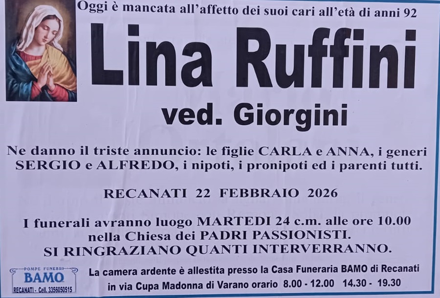 E’ morta Lina Ruffini ved. Giorgini