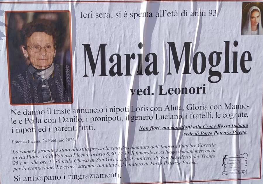 E’ morta Maria Moglie ved. Leonori