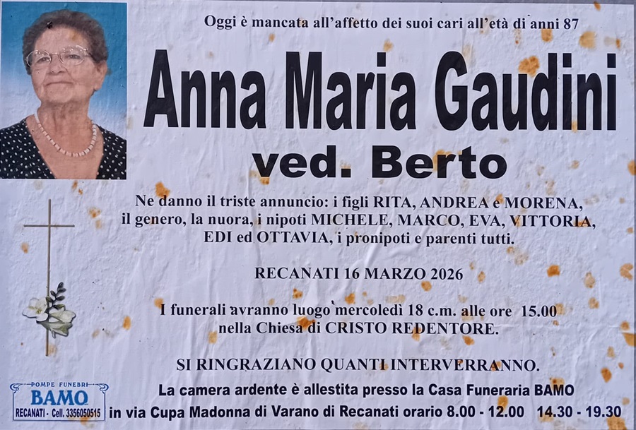Home » E’ morta Anna Maria Gaudini ved. Berto