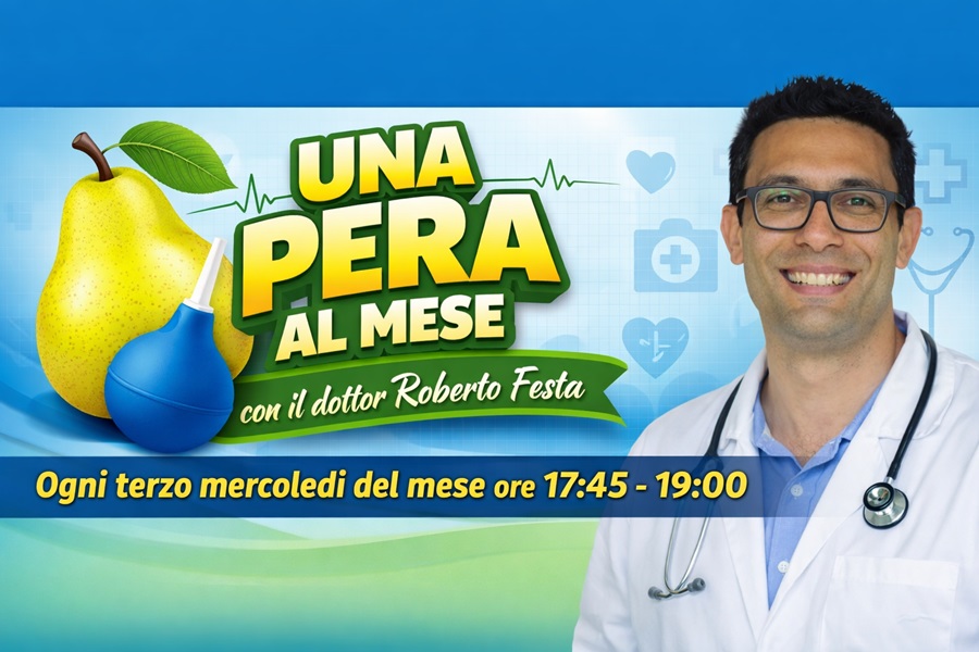 Secondo appuntamento con la salute sulle frequenze di Radio Erre. Questa sera, dalle ore 17.45 alle 19.00, torna la rubrica “Una pera al mese”, condotta dal dottor Roberto Festa, medico di medicina generale, per un nuovo incontro dedicato alla medicina di base e alla prevenzione.