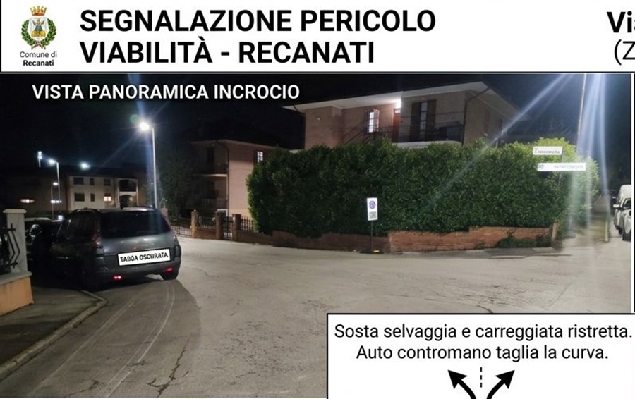 Scrivo per denunciare pubblicamente e segnalare alle autorità competenti una situazione di grave e costante pericolo per la viabilità a Recanati, precisamente in Via Girolamo Moretti, nei pressi dell’incrocio e in direzione PalaCingolani.