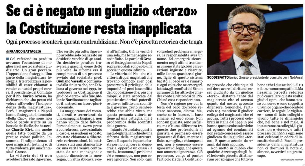 Partendo dall’esito referendario e dalle reazioni del mondo politico e giudiziario, l’analisi si allarga a un quadro più ampio: il rapporto tra giustizia e Costituzione, le riforme avviate e mai compiute, e le conseguenze che, nel tempo, si riflettono sui diritti dei cittadini. Battaglia richiama anche dati e casi concreti per sostenere la sua tesi, sottolineando come il problema non sia episodico, ma strutturale.
