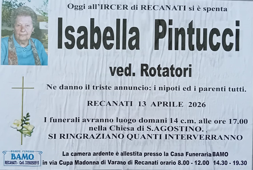 Home » E’ morta Isabella Pintucci ved. Rotatori
