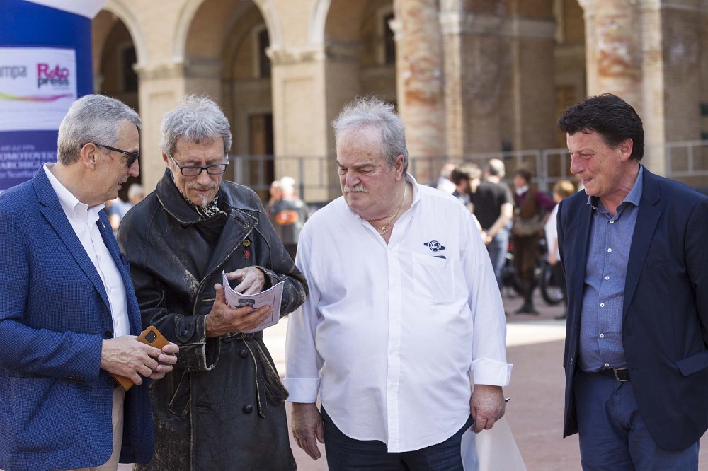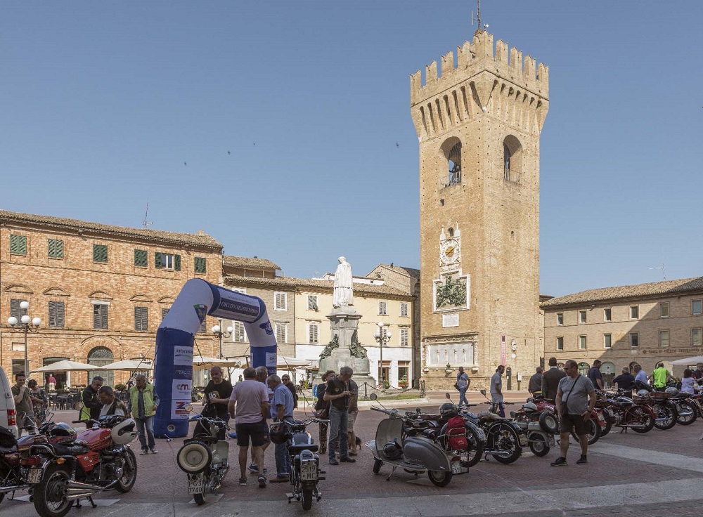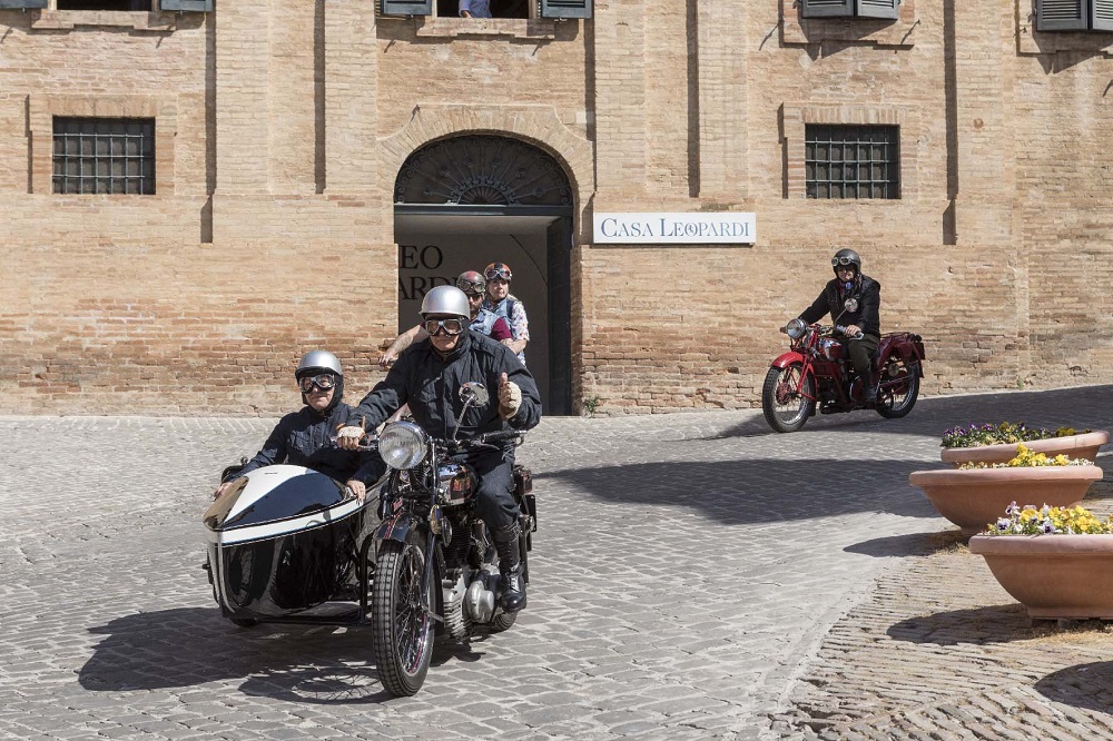 La suggestiva sede di Piazza Giacomo Leopardi ha visto arrivare di primo mattino le rombanti moto dei partecipanti, di pregevole valore storico, numerose del periodo anni venti-trenta del secolo scorso. Ariel Red Hunter del 1939, Benelli Sport (1928), Rudge Sport 4 Valvole (1936), Aquila Invicta (1933), Moto Guzzi 14 Sport (1930), Benelli Sport 250 (1938), Moto Guzzi GTV side (1938), Norton TT (1927), Ariel VG (1934), Rudge Ulster 4 valvole (1938), Bianchi Freccia Azzurra Side (1938), Moto Guzzi GTS (1935), Benelli 4TSE (1938), Moto Guzzi Sport 14 side (1929) ed altro ancora.